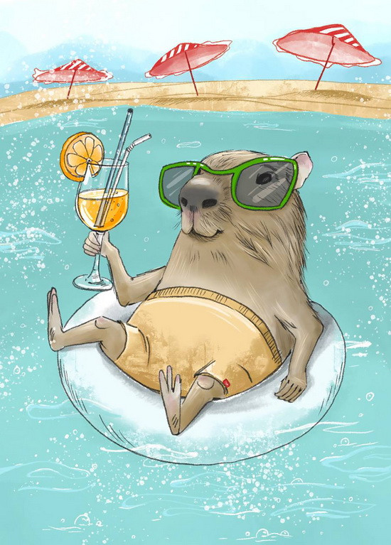 Вітайте головного гуру листівочного релаксу — капібару, яка знає, як проводити літо на всі 100%! Коктейль у лапі, стильні окуляри на носі, настрій — відпустка без турбот. Ідеальна листівка для тих, хто вміє відпочивати або мріє це нарешті зробити. Надішліть трохи літнього настрою другу, колезі або собі — ви це заслужили!