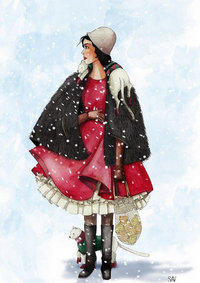 Листівка "Дівчина в червоному з котами"
